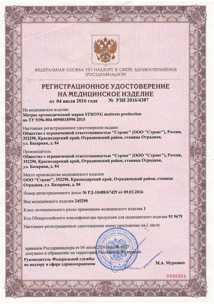 На приложении к медицинскому сертификату от Росздравнадзора указаны модели, которые прошли тест на ортопедичность.